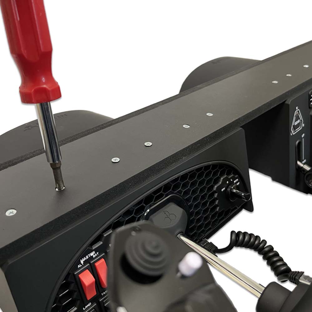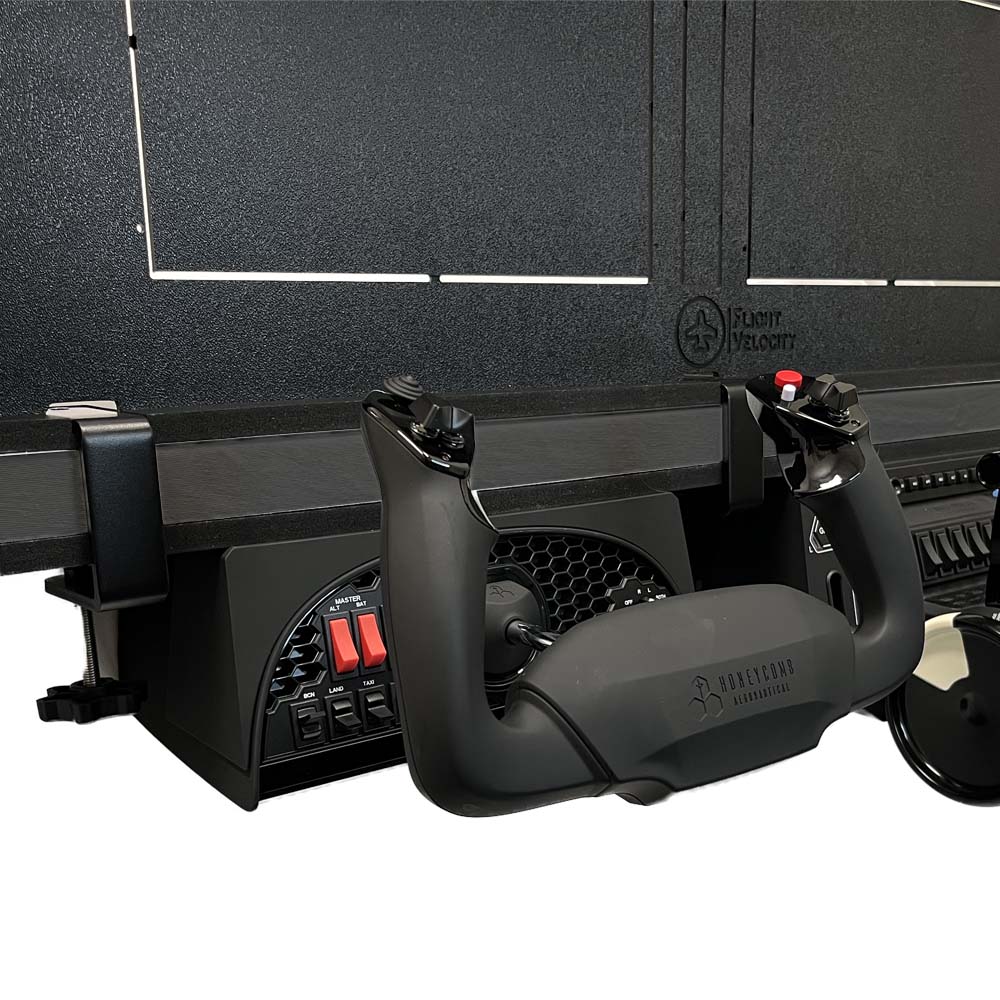 This panel utilizes the mounting clamps supplied with the Honeycomb Alpha and Bravo to provide the ultimate under-desk mount flight sim experience available on the market today. Supporting our Dual Encoder/Touchscreen, FlightSim Builder G1000, or the RealSimGear G1000 suite, you'll find no other panel at any price with this functionality.
